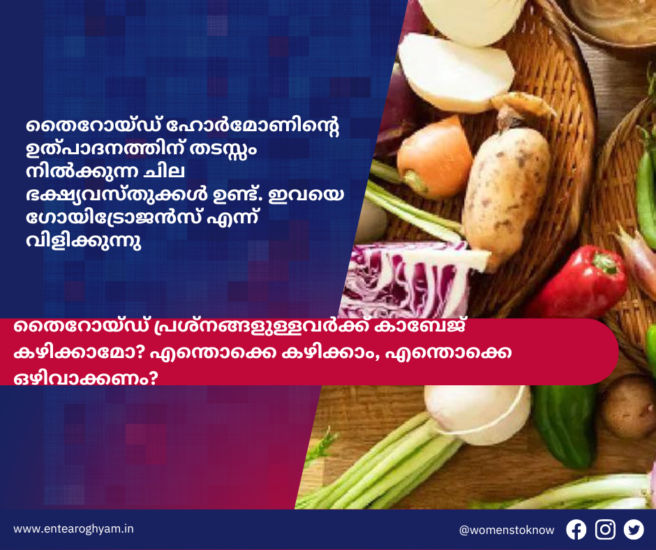 തൈറോയ്ഡ് ഹോര്മോണിന്റെ ഉത്പാദനത്തിന് തടസ്സം നില്ക്കുന്ന ചില ഭക്ഷ്യവസ്തുക്കള് ഉണ്ട്. ഇവയെ ഗോയിട്രോജന്സ് എന്ന് വിളിക്കുന്നു. ഇവയിലെ ചില ഘടകങ്ങളാണ് തൈറോയ്ഡ് ഹോര്മോണിന്റെ ഉത്പാദനത്തിന് തടസ്സമാകുന്നത്.