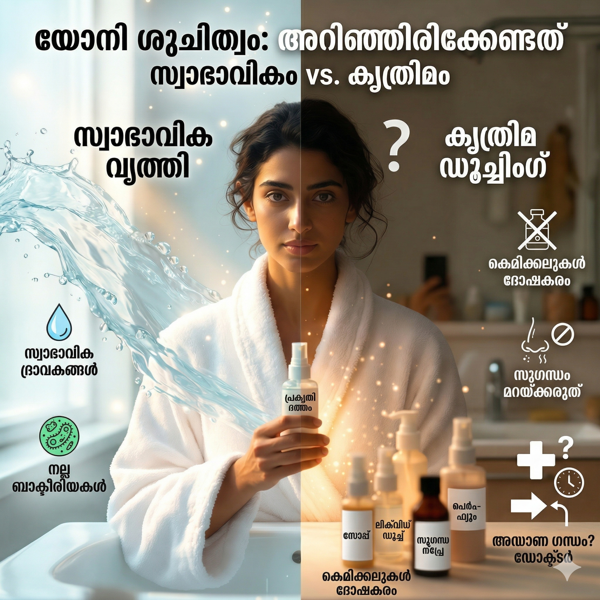 നമ്മുടെ ശരീരം സ്വാഭാവികമായി തന്നെ യോനിയെ വൃത്തിയാക്കാൻ കഴിവുള്ളതാണ്. ഇതിനായി ശരീരം ഉത്പാദിപ്പിക്കുന്ന ദ്രാവകങ്ങൾ (Mucus) അവിടെയുള്ള മാലിന്യങ്ങളെ പുറന്തള്ളുന്നു.