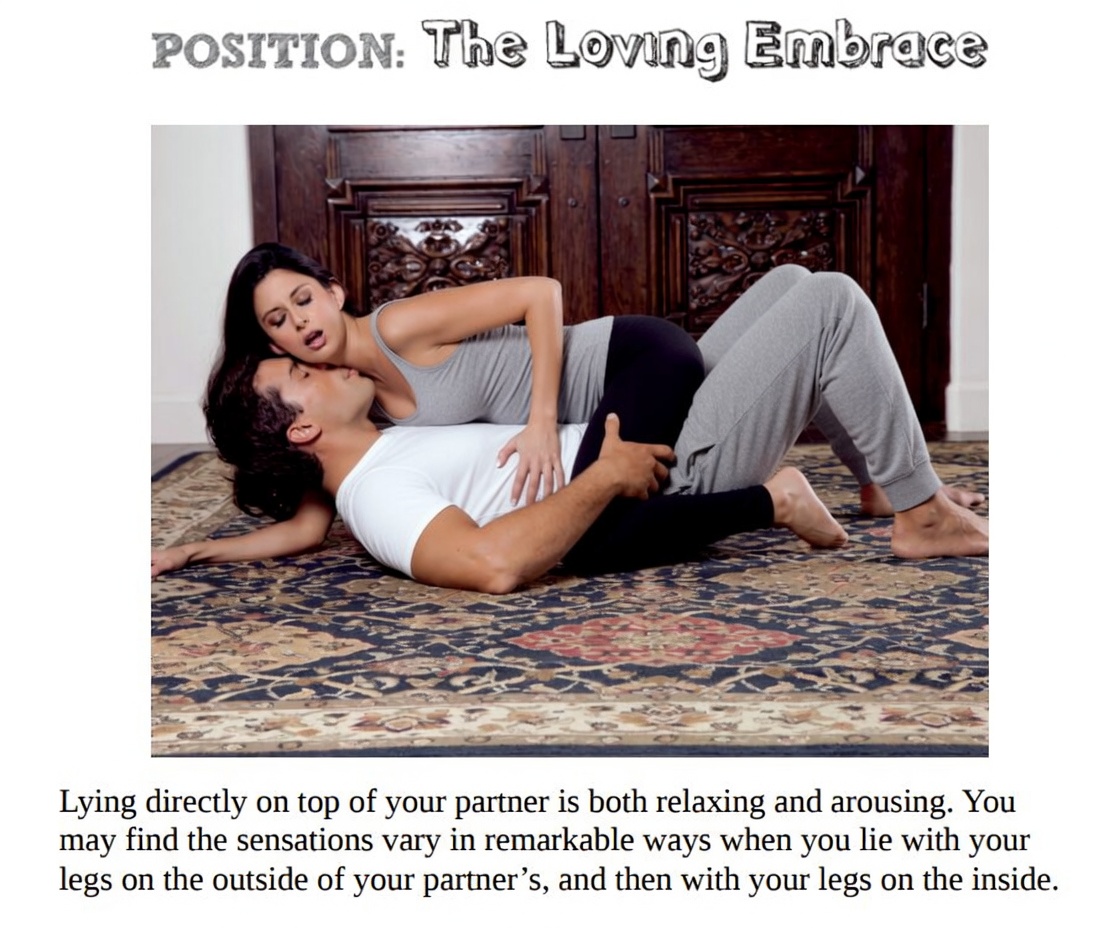 കാലുകളുടെ വിന്യാസം: കാലുകളുടെ സ്ഥാനം മാറ്റുന്നതിലൂടെ വ്യത്യസ്തമായ അനുഭവങ്ങൾ നേടാൻ ഇതിൽ സാധിക്കും. സ്ത്രീ തന്റെ കാലുകൾ പുരുഷന്റെ കാലുകൾക്ക് പുറത്തായി വെച്ച് കിടക്കുന്നത് ഒരു രീതിയാണ്. ഇതിൽ നിന്നും മാറി കാലുകൾ പുരുഷന്റെ കാലുകൾക്കിടയിലായി (Inside) വെക്കുന്നത് തികച്ചും വ്യത്യസ്തമായ ഒരു അനുഭവം നൽകുന്നു.