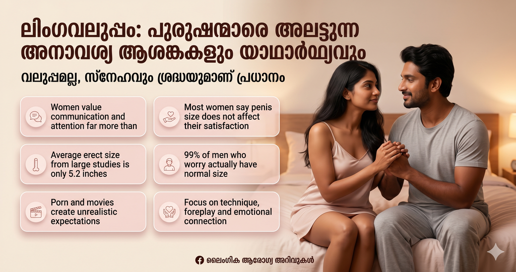ലൈംഗികതയെക്കുറിച്ചുള്ള തെറ്റായ ധാരണകൾ പുരുഷന്മാരിൽ വലിയ രീതിയിലുള്ള മാനസിക സമ്മർദ്ദമാണ് ഉണ്ടാക്കുന്നത്. ഇതിൽ ഏറ്റവും പ്രധാനപ്പെട്ട ഒന്നാണ് ലിംഗവലുപ്പം. ലിംഗം വലുതായാൽ മാത്രമേ പങ്കാളിക്ക് കൂടുതൽ സുഖം നൽകാൻ കഴിയൂ എന്ന മിഥ്യാധാരണ പലരുടെയും ആത്മവിശ്വാസം തകർക്കുന്നു.