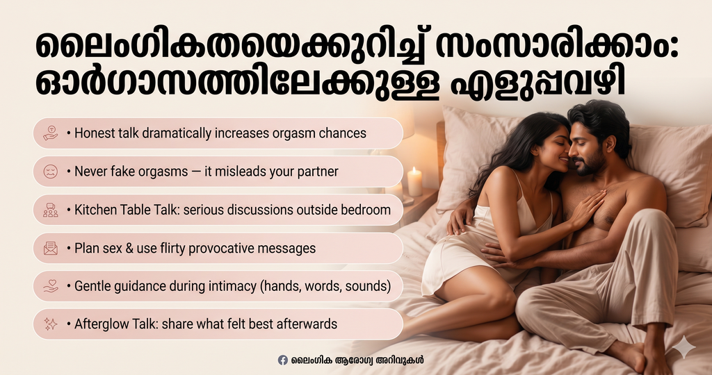 ലൈംഗിക സംതൃപ്തിയിലേക്കും ഓർഗാസത്തിലേക്കും എത്തുന്നതിന് ആശയവിനിമയം (Sexual Communication) എത്രത്തോളം പ്രധാനമാണെന്ന് വിശദീകരിക്കുന്ന ബ്ലോഗ് ലേഖനവും സോഷ്യൽ മീഡിയ പോസ്റ്റും താഴെ നൽകുന്നു.