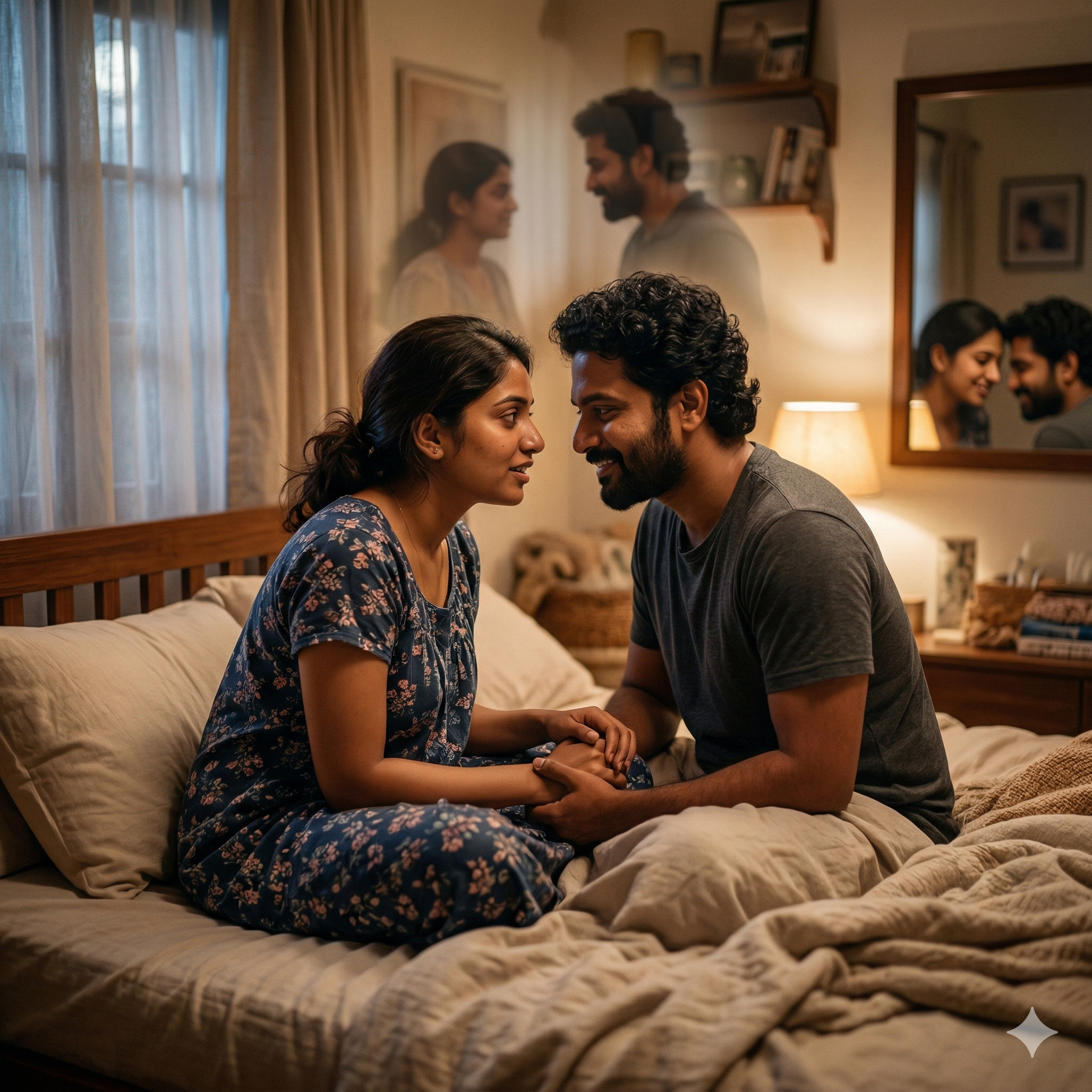ആ വരികൾ പ്രിയയ്ക്ക് വലിയൊരു ആത്മവിശ്വാസം നൽകി. അന്ന് രാത്രി അവർ കിടപ്പറയിൽ ഒത്തുചേർന്നപ്പോൾ, പ്രിയ തന്റെ ഉള്ളിലെ സങ്കോചങ്ങൾ മാറ്റിവെക്കാൻ തീരുമാനിച്ചു. അവൾ അരുണിന്റെ കൈകൾ ചേർത്തുപിടിച്ചു കൊണ്ട് പതിഞ്ഞ സ്വരത്തിൽ പറഞ്ഞു: