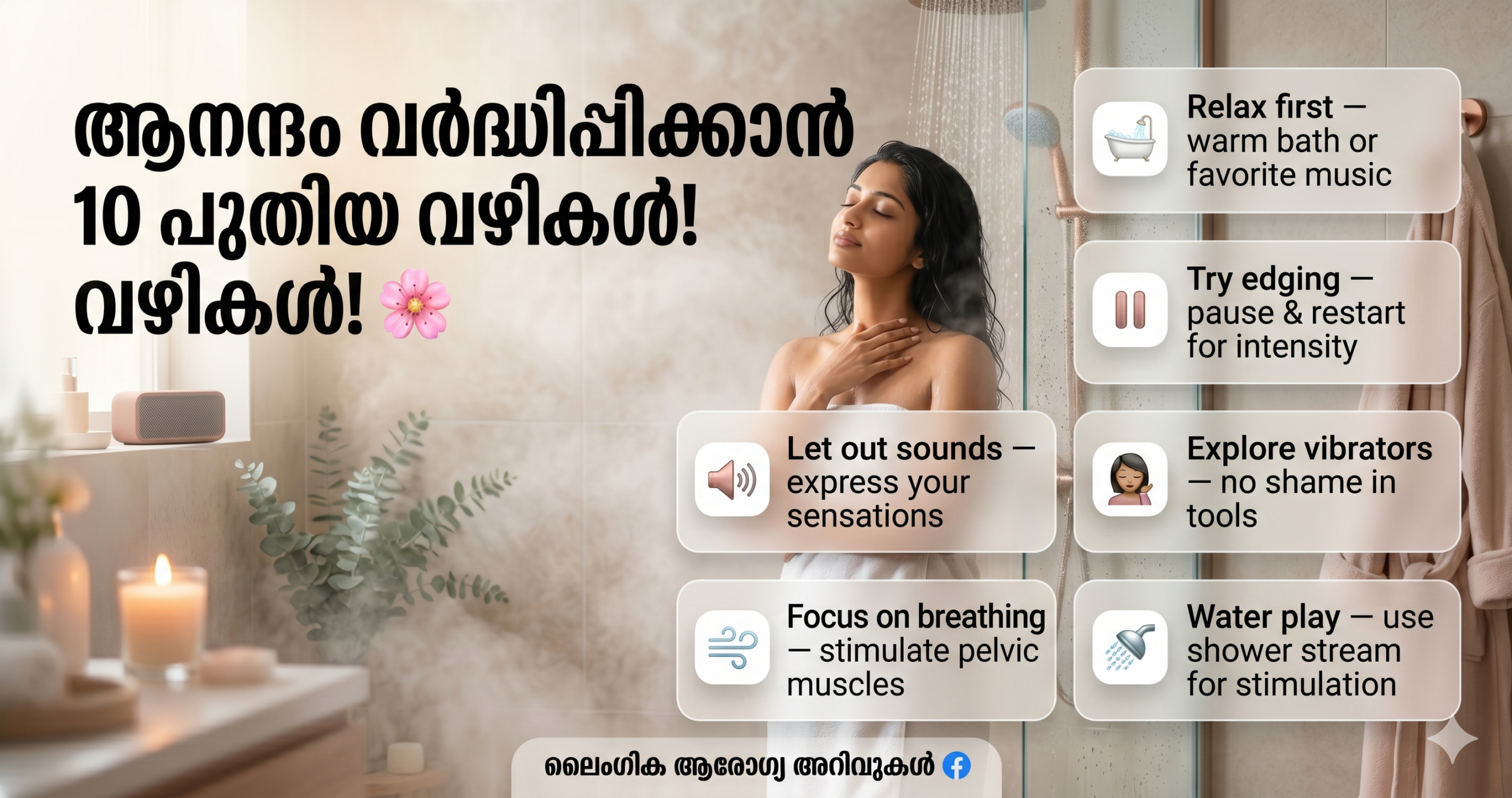 സ്വന്തം ശരീരത്തെ അറിയാനുള്ള യാത്രയിൽ നിങ്ങൾ ചില സ്പർശനങ്ങൾ ശീലിച്ചു കഴിഞ്ഞിരിക്കാം. എന്നാൽ ആ അനുഭവം കൂടുതൽ തീവ്രമാക്കാനും വൈവിധ്യമുള്ളതാക്കാനും താഴെ പറയുന്ന പരീക്ഷണങ്ങൾ നിങ്ങളെ സഹായിക്കും.