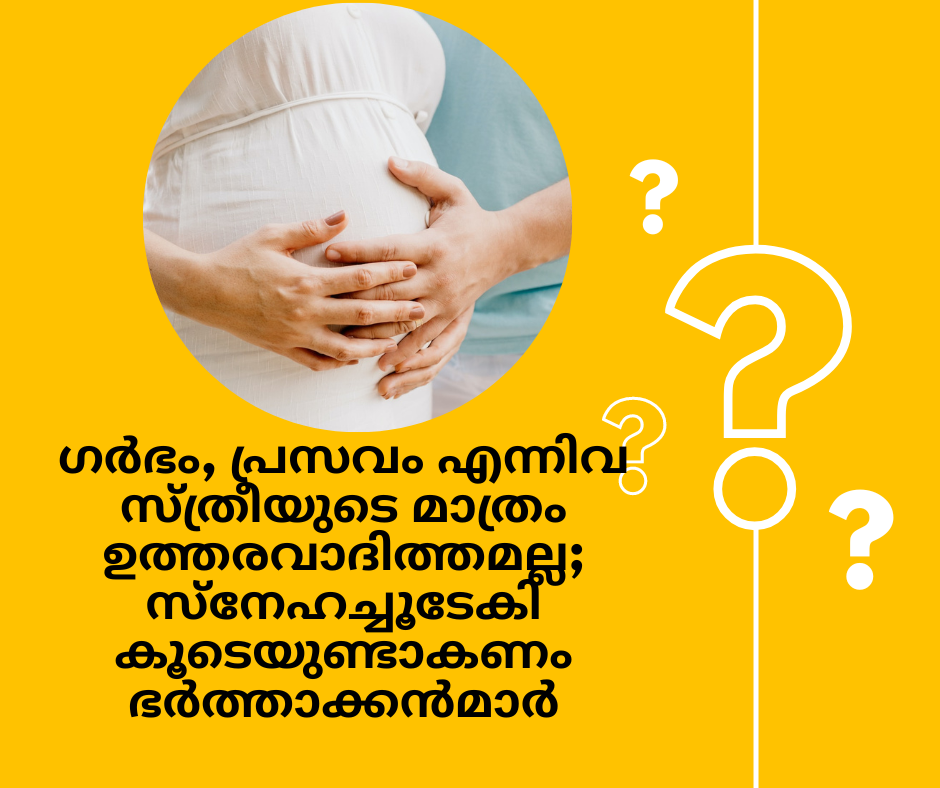 ∙ ഗർഭം, പ്രസവം എന്നിവ സ്ത്രീയുെട മാത്രം ഉത്തരവാദിത്തമല്ല എന്ന േബാധം ഭർത്താവിനും മറ്റ് കുടുംബാംഗങ്ങൾക്കും ഉണ്ടായിരിക്കണം. ഗർഭിണികൾക്ക് പ്രത്യേകിച്ച് ആദ്യമായി ഗർഭം ധരിക്കുന്നവർക്ക് ഒട്ടേറെ ആശങ്കകളും അസ്വാസ്ഥ്യങ്ങളും സ്വാഭാവികമാണ്. അതുപോെല തന്നെ കുഞ്ഞിനെക്കുറിച്ചുള്ള സ്വപ്നങ്ങളും. ഇത്തരം സ്വപ്നങ്ങളും ആശങ്കകളും ഭർത്താക്കൻമാർ േചാദിച്ചു മനസ്സിലാക്കുകയും അവർ പറയുന്ന കാര്യങ്ങൾ ശ്രദ്ധയോെട, ആർദ്രതയോെട േകൾക്കുകയും വേണം.