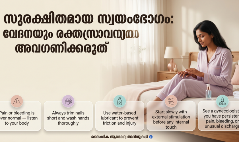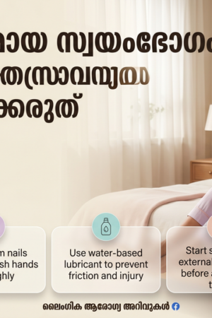 ശുചിത്വം: സ്വയംഭോഗത്തിന് മുൻപ് കൈകൾ സോപ്പിട്ട് നന്നായി കഴുകുക. നഖങ്ങൾ വെട്ടി വൃത്തിയാക്കി നിർത്തുക.